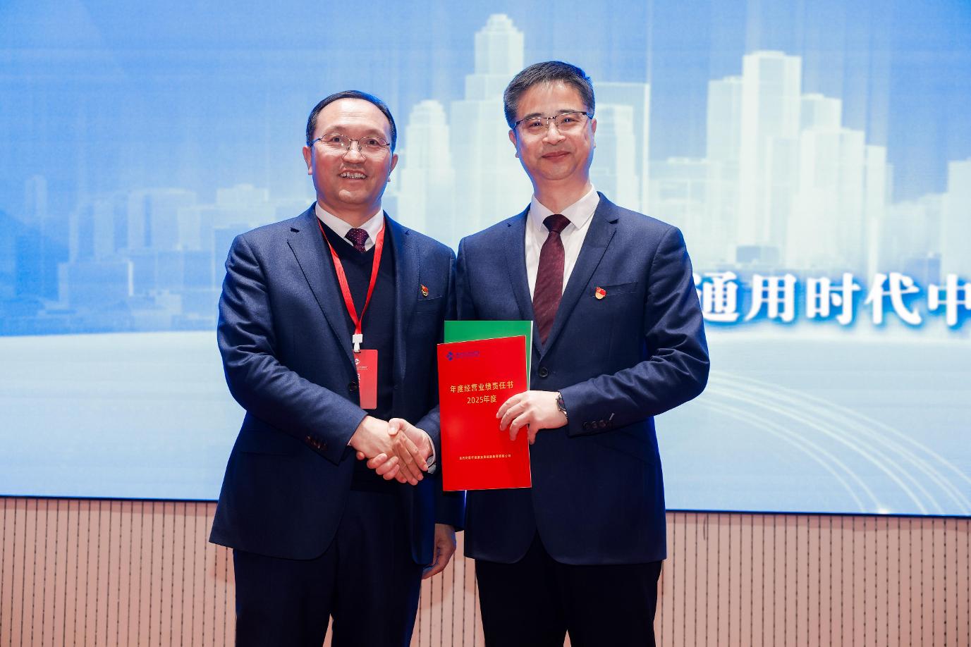 所属单位主要负责人现场递交2025年度《党建工作目标责任书》《经营业绩责任书》和《安全环保质量工作目标责任书》。